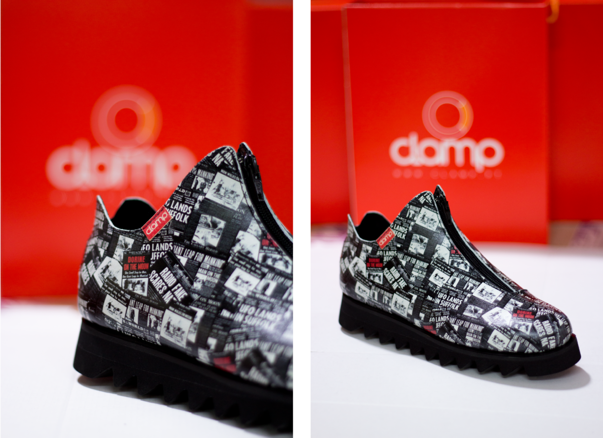 We chose Fincal for Dorine, since we know she already likes that range (she has and wears Finch and Finolia), so we decided to do it with a special print, personalized just for her! We used our print “Newspaper” and add it her name, switching “Man on the Moon” for “Dorine on the Moon”, making it unique and fun, just like all of our shoes, but this one being even more unique and special.